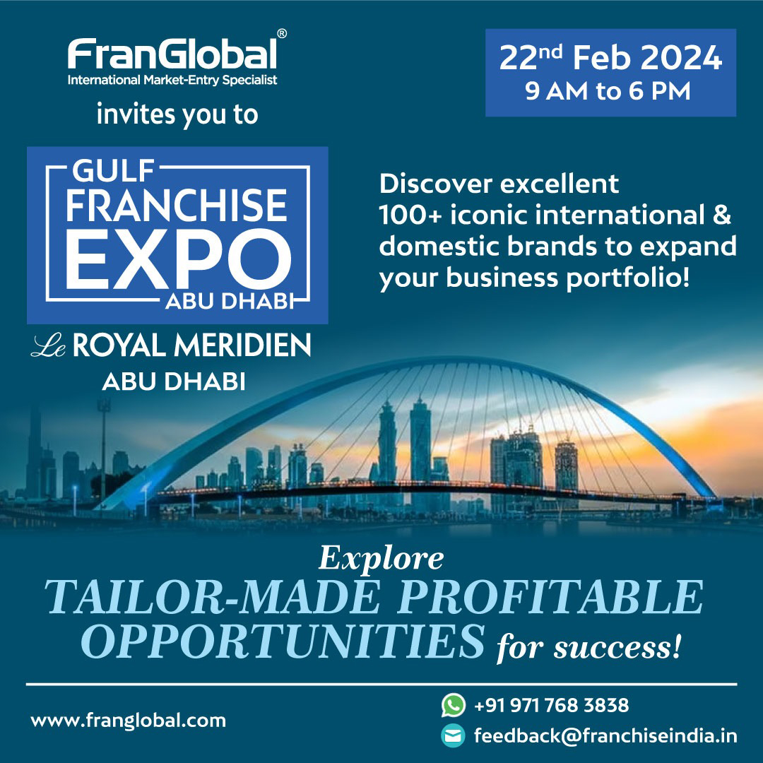 Exclusive partner FranGlobal presents the Gulf Franchise Show 2024 at Le Royal Meridien, Abu Dhabi which aims at international market entry opportunity for Indian Brands. Strategic global location, business-friendly policies and future-forward infrastructure has shaped Gulf & GCC countries into a leading global trade, finance and e-commerce powerhouse.